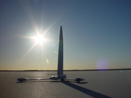 Once the initial testing is complete and all modifications made, the craft will go back to the workshop for final fairing , painting and logo's, etc. None of this would have been possible without the tremendous support of the local landsailors, whose assistance was invaluable. My sincere thanks to all those who turned up to help.